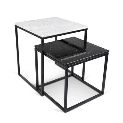 2 Side tables made of steel with black electrostatic anti rust coating, spain black marble & karara marble