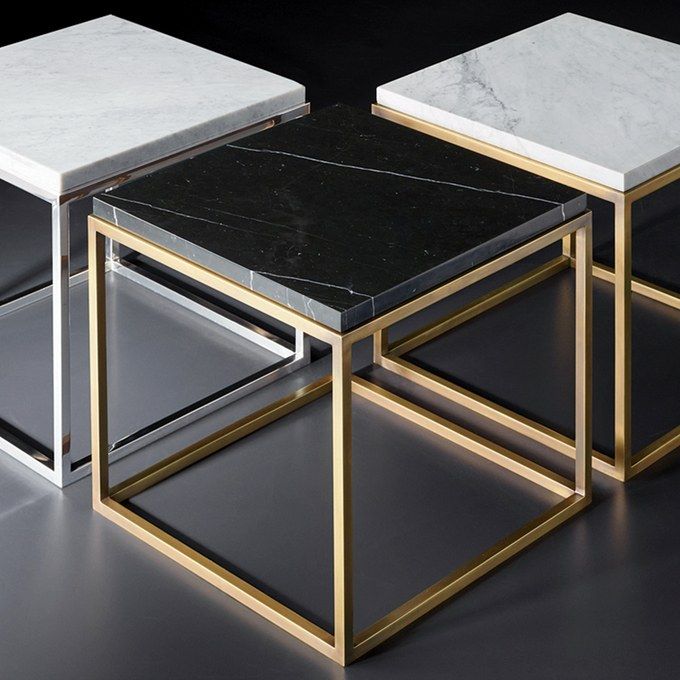 3 side tables made of stainless steel, 2 tables coated with gold - 1 sikver & black Aswan marble and Carrara marble